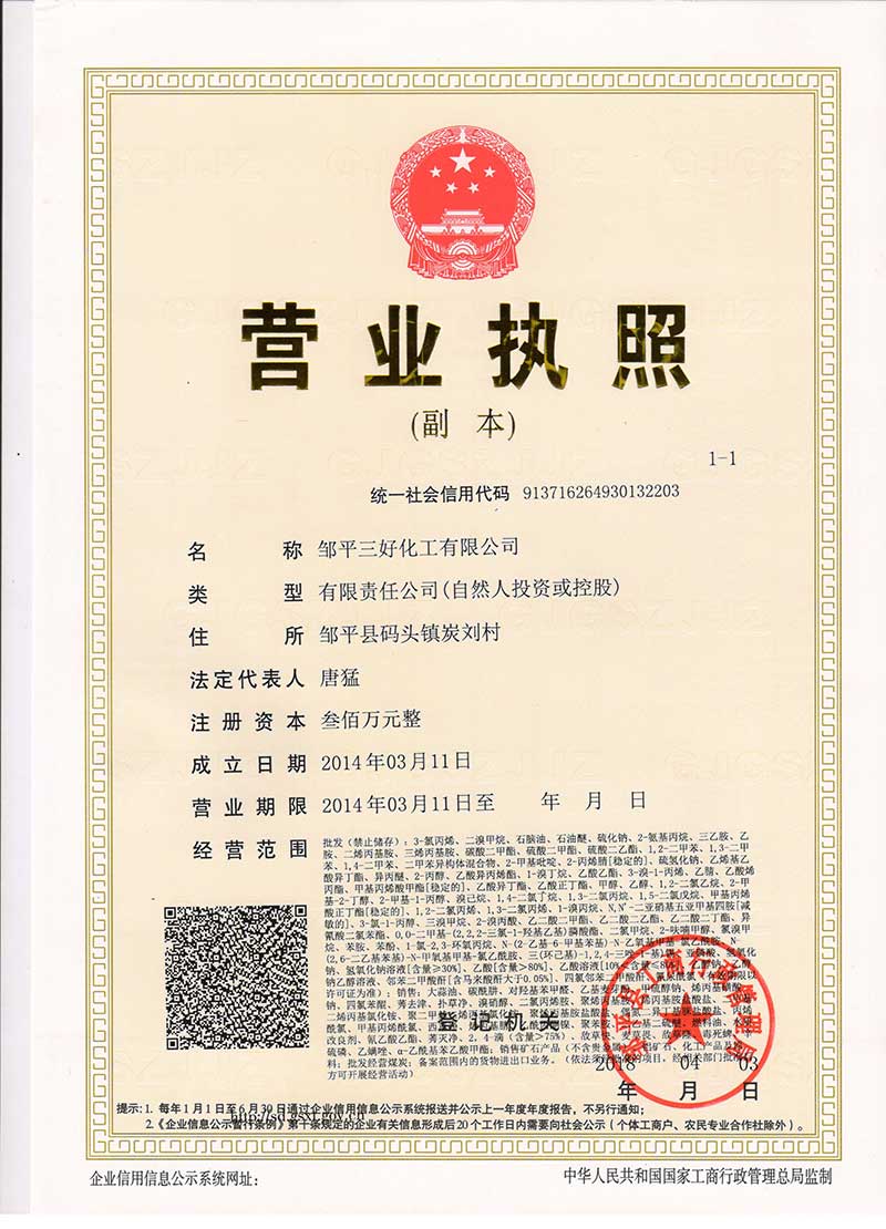 Zouping Sanhao Chemical Co., Ltd. is located in Zouping, Shandong Province. After years of development, it has become a marketing company integrating R & D and sales, domestic trade and international trade. Its business scope covers feed additives, pesticide intermediates, pharmaceutical intermediates, organic chemical products and trace elements.